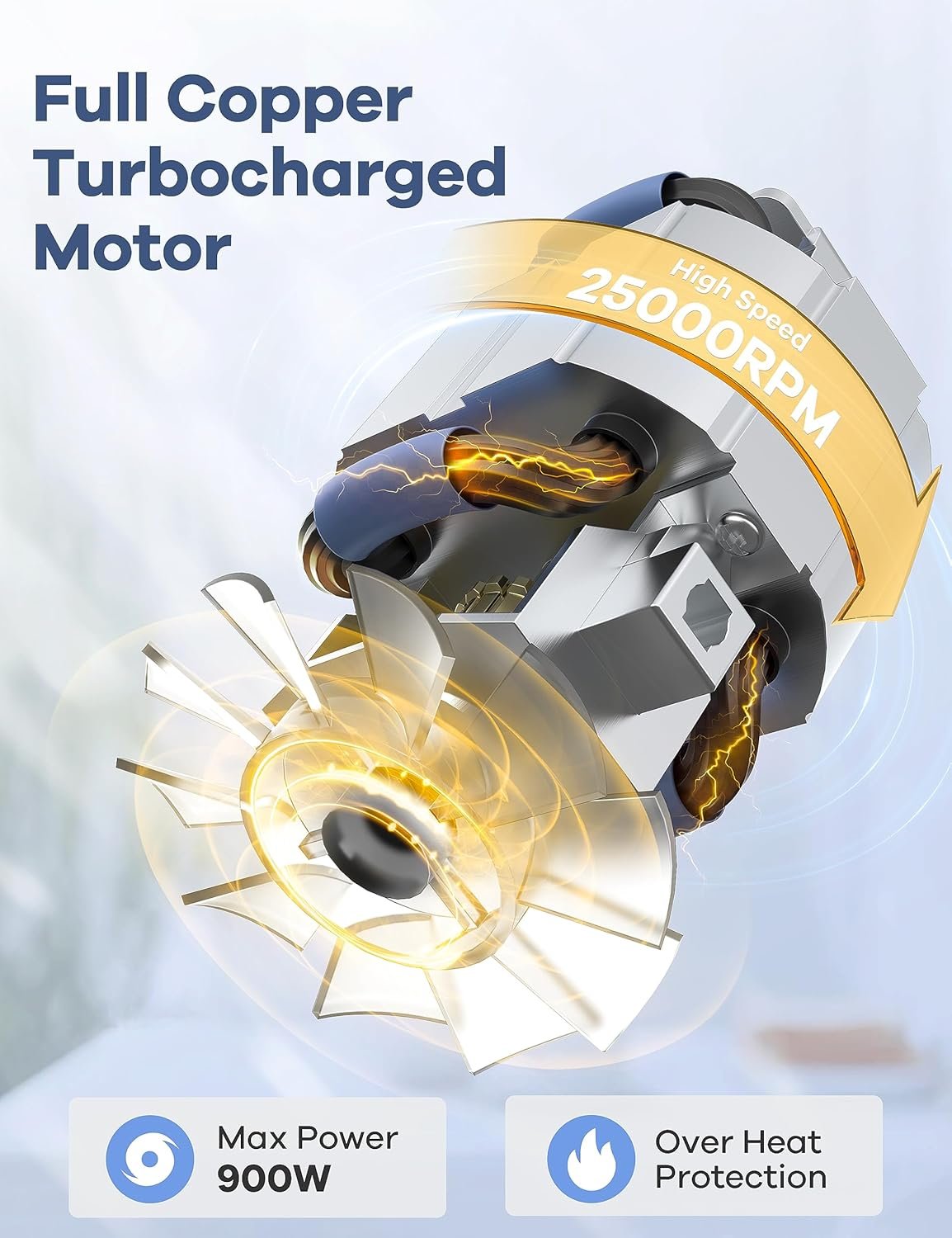 • 900W Power: The upgraded turbocharged motor handles tough foods and enables efficient blending or grinding.