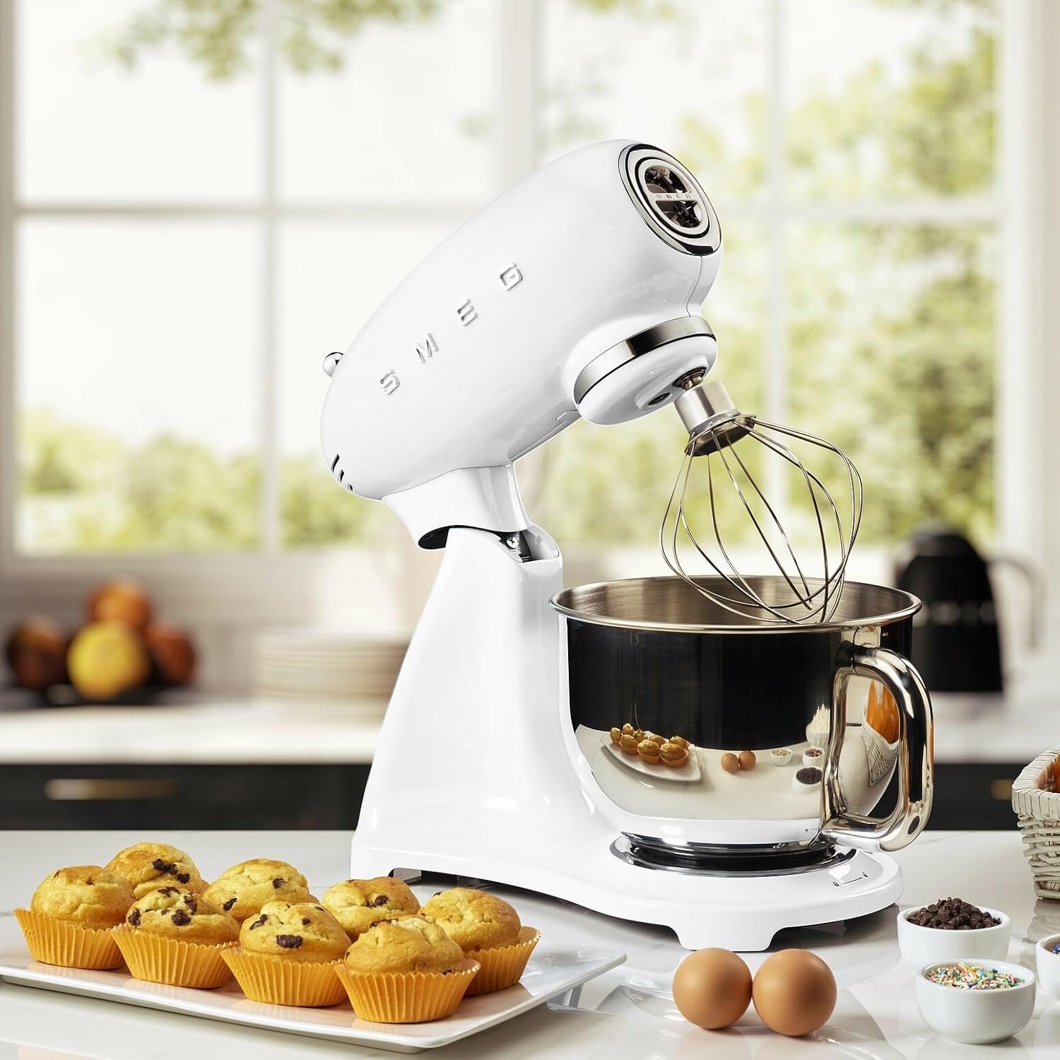 When lining up SMEG against other countertop baking mixers, its standout retro style puts it in a class of its own. Compared to the KitchenAid Artisan Series and Cuisinart SM-50, this model offers comparable build quality and mixing results, but wins in vintage kitchen charm and compact dimensions.